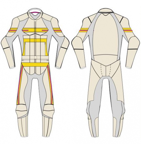 Garment Type: 1pc suit with pre-curved arms and legs.Features: CE protectors in elbows, shoulders & knees. Light-weight Stretch Cordura® panels. Double row stitched main zipper for increased strength.Outer Shell Materials: 1.2 – 1.4mm cowhide. Lightweight Stretch Cordura® panels.Inner Materials: Mesh anti-bacterial, non-allergenic nylon mesh.Armor / Fitment type: CE elbow and knee protectors. CE shoulder protectors in mesh lining pockets. Foam padding in lower torso, hip and coccyx. knee sliders.Specific Details: can be supply in perforated style. 2nd layer of perforated cowhide in elbows, shoulders, knees & seat. Rear torso, knee and shoulder blade stretch panels. YKK® nylon coil zippers. Soft touch low profile Neoprene collar. Comfort cuff and leg hem edging. Available in different colors. SIZES: 40-54(US-) 40-48 (CAN), 50-64(EUR)
